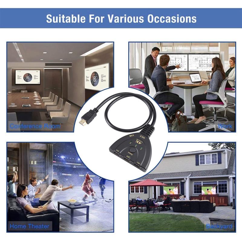 3 x 1 4K 30Hz HDMI Switcher with Pigtail HDMI Cable, Support External Power Supply