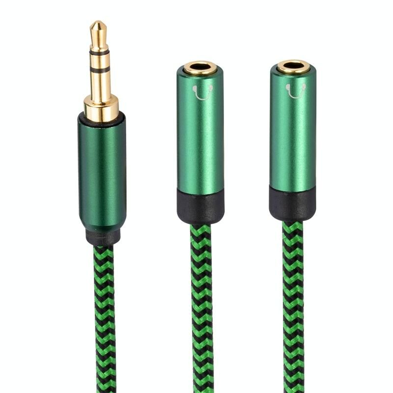 Καλώδιο προσαρμογέα ήχου 3.5mm αρσενικό σε διπλό 3.5mm θηλυκό 2 σε 1, μήκος: 2m (πράσινο)