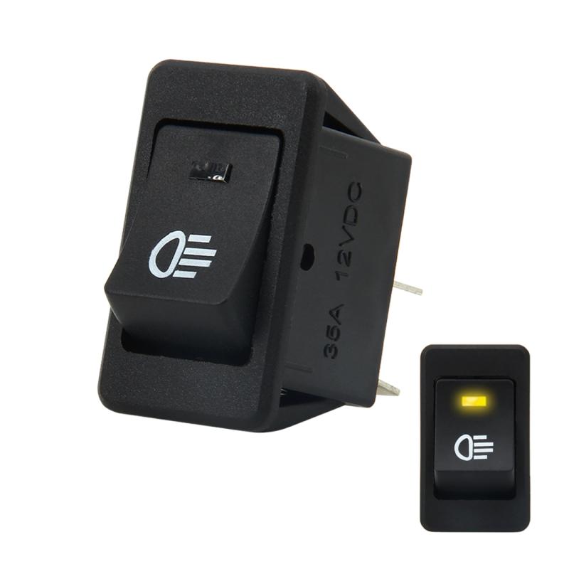 30 Amp 12 Volt Four Plugs LED ON OFF Car Fog Light Switch (Yellow Light)