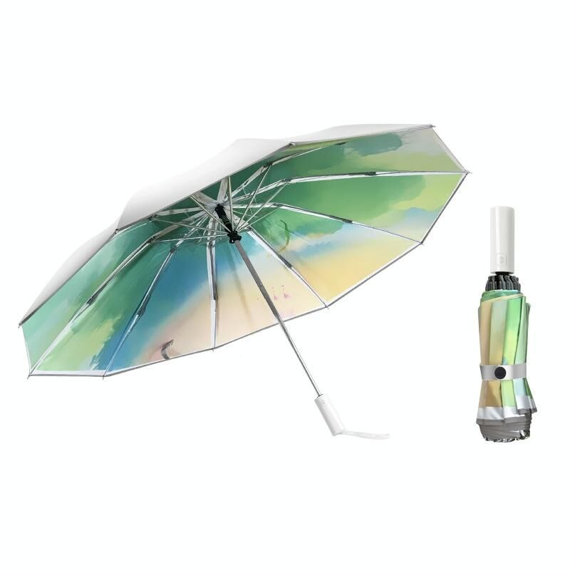 3021 Αυτόματη ομπρέλα διπλής χρήσης βροχής και ήλιου Sun-Proof και Anti-Rebound πτυσσόμενη ομπρέλα (Illusion Green)