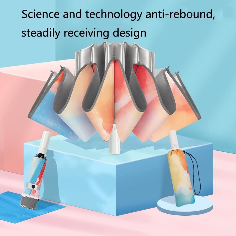 17. Χαρακτηριστικά: αυτόματο άνοιγμα και κλείσιμο, βροχή ή λιακάδα, αποτελεσματική αδιαβροχοποίηση, αποτελεσματική αντίσταση στον άνεμο, αναδιπλούμενη ομπρέλα για την αποφυγή αναπήδησης