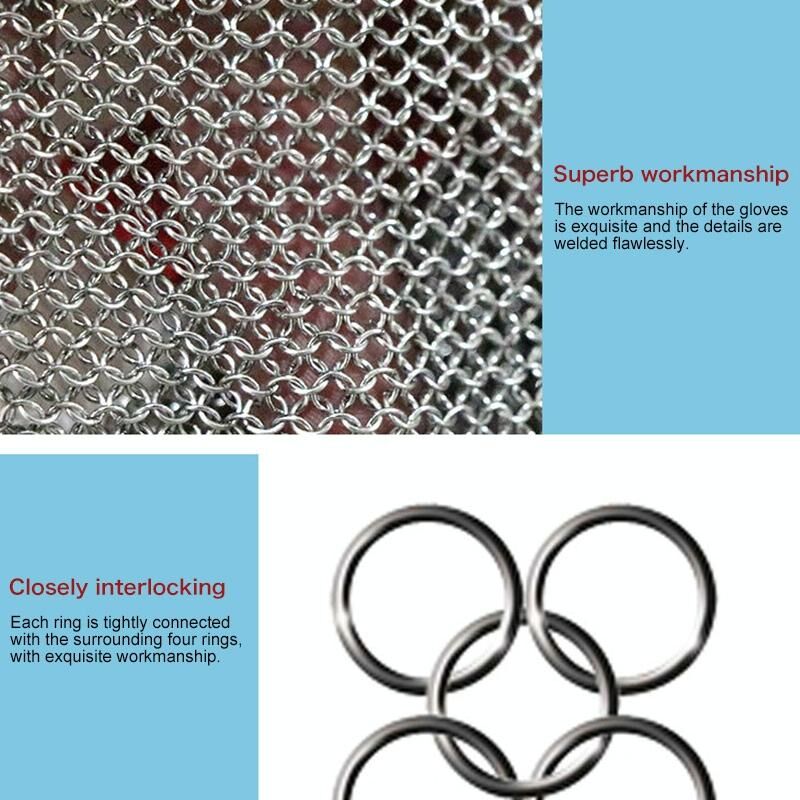 6. Cleaning and storage of steel wire gloves: wash the gloves with soapy water (50 degrees) or hot water mixed with detergent (50 degrees) at least once a day; the cleaned gloves should be stored in a cool, ventilated place.