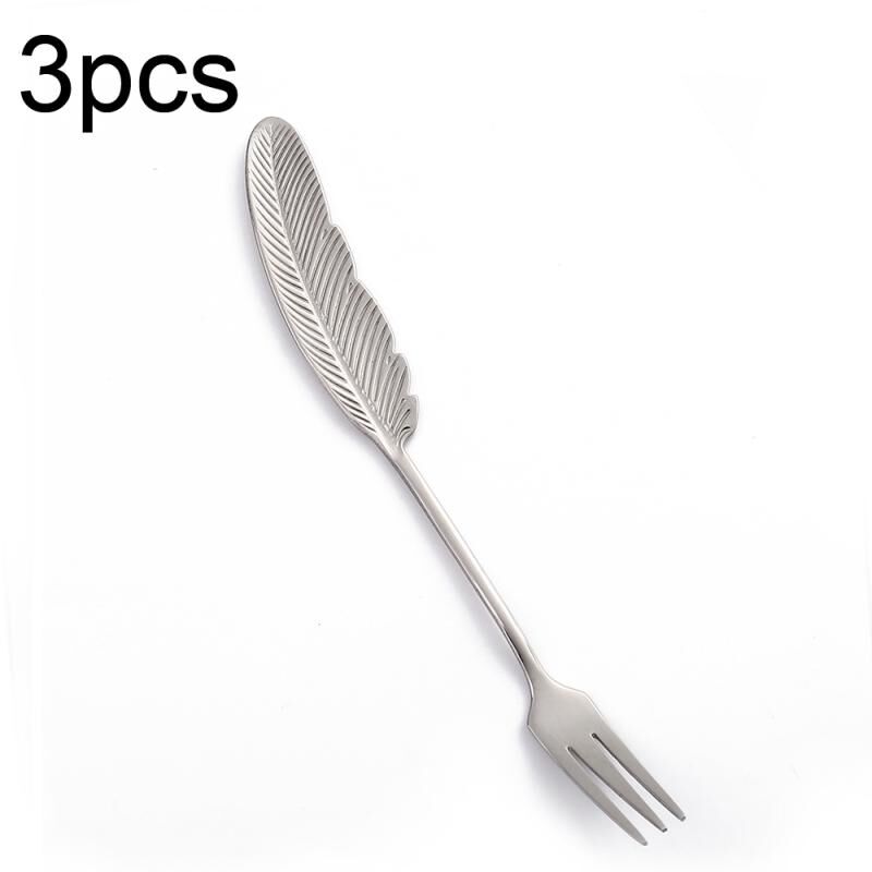 304 από ανοξείδωτο χάλυβα φτερό κουτάλι πιρούνι λογοτεχνικά επιτραπέζια σκεύη, στυλ: Πιρούνι 3pcs-Αληθινό Χρώμα