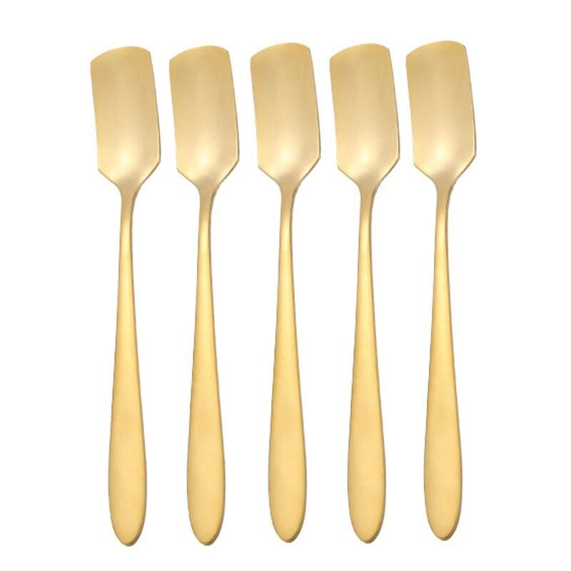 304 από ανοξείδωτο χάλυβα τετράγωνο κεφάλι κουτάλι κέικ επιδόρπιο καφέ μικρό κουτάλι, χρώμα: χρυσό τιτάνιο