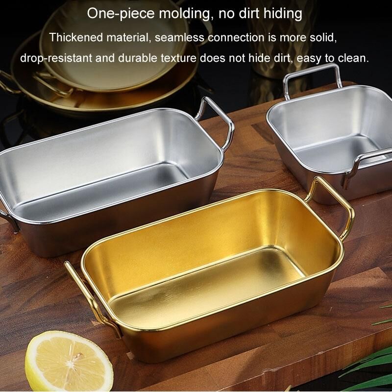 304 Ανοξείδωτο χάλυβα με διπλό αυτί σνακ δίσκο Fried Chicken Chips Cold Dishes Candy Snacks Tray, μέγεθος: 17cm Round (Silver)