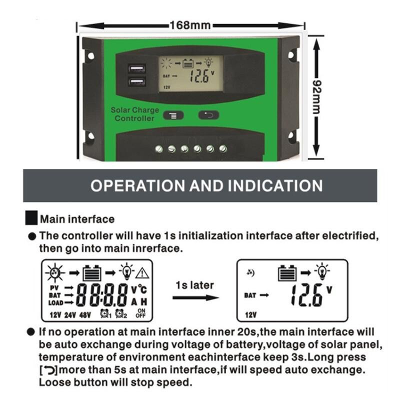 4. Float charging voltage: 13.8V/27.6V (adjustable)