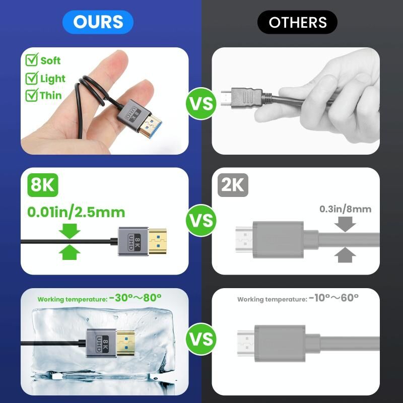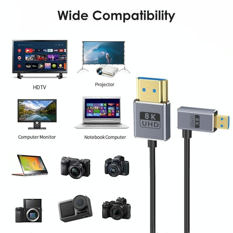 4. Micro HDMI 8K cable supports higher resolution 8K 60Hz, compatible with 4K 120Hz/60Hz, 1080P, etc., allowing you to enjoy the best visual and smooth experience of the big screen.