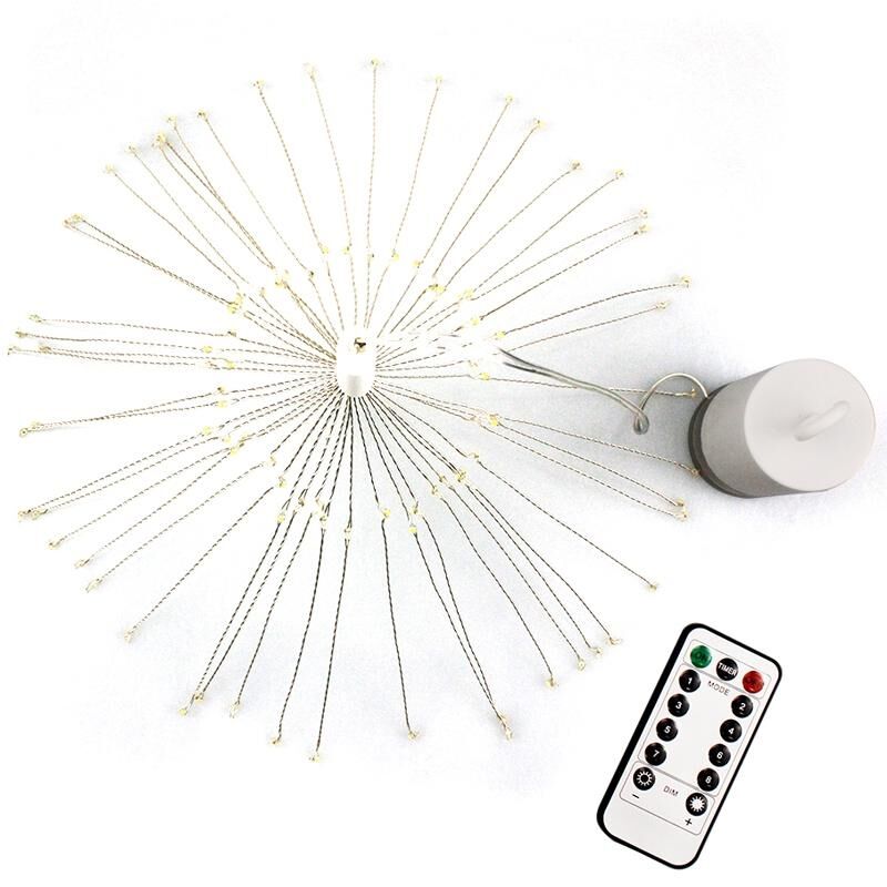 Φωτάκια LED με χαλύτινο σύρμα, 150 LED, 30cm, με δυνατότητα ρύθμισης έντασης, με μπαταρίες και τηλεχειριστήριο (Λευκό Φως) - Πυροτέχνημα "Έκρηξη"