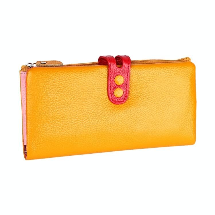 3572 Litchi υφή δέρμα φερμουάρ κυρία πορτοφόλι μεγάλης χωρητικότητας πορτοφόλι (κίτρινο)