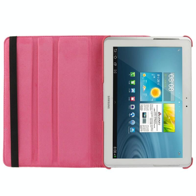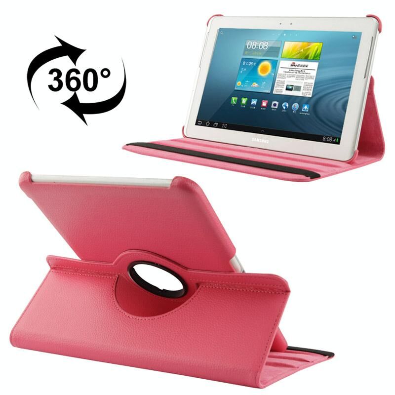 360 Degree Rotatable Litchi Texture Leather Case with Holder for Galaxy Tab 2 (10.1) / P5100(Magenta)