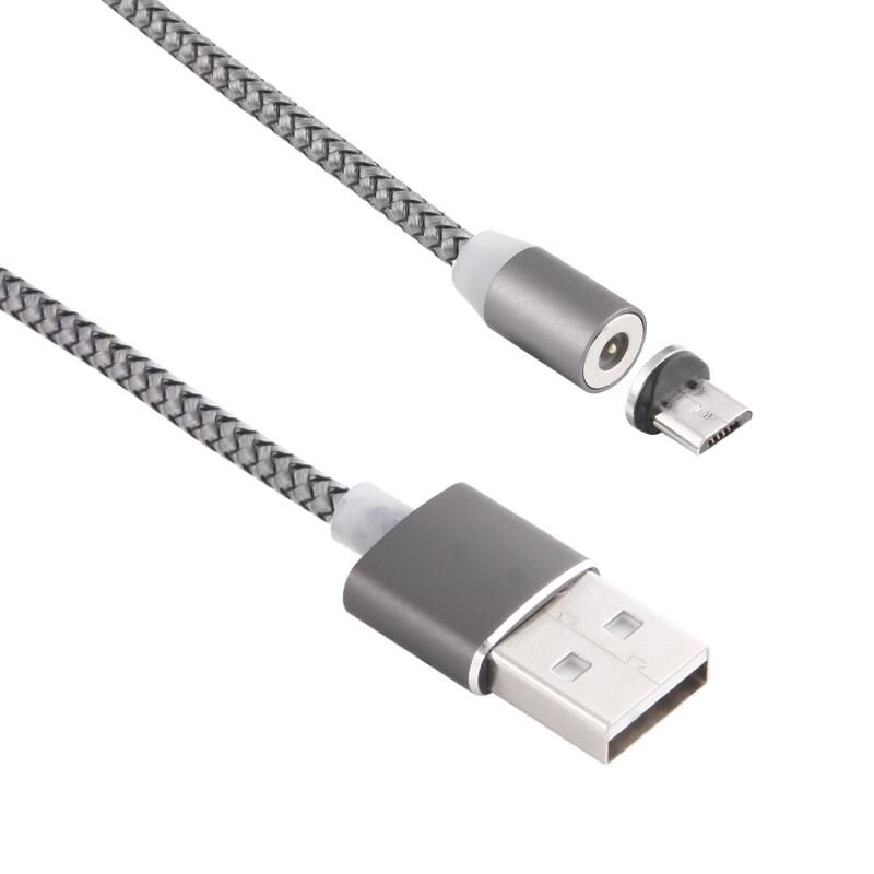Καλώδιο Φόρτισης με Μαγνητική Σύνδεση Micro USB σε USB 2.0, 1m, με Περιστροφή 360 Μοιρών, Στυλ Πλέγματος και Δείκτη LED (Χρυσό)