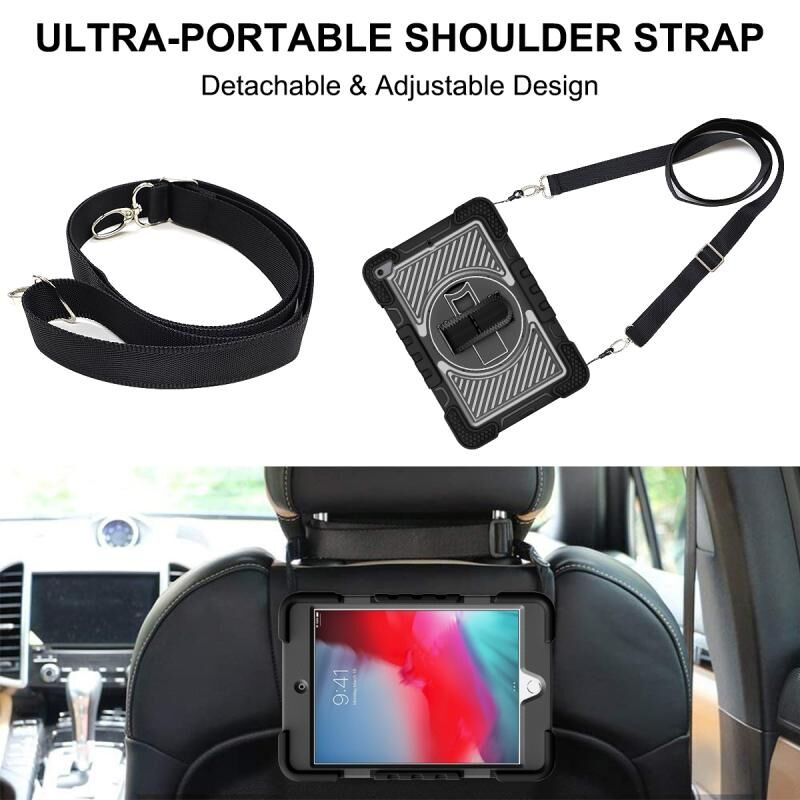 Θήκη 360 Μοιρών Περιστροφής, Αντίθετων Χρωμάτων, Αντικραδασμική Σιλικόνης + PC με Στήριξη & Λουρί Χεριού & Λουρί Ώμου για iPad mini (2019) / 4 (Μαύρο)