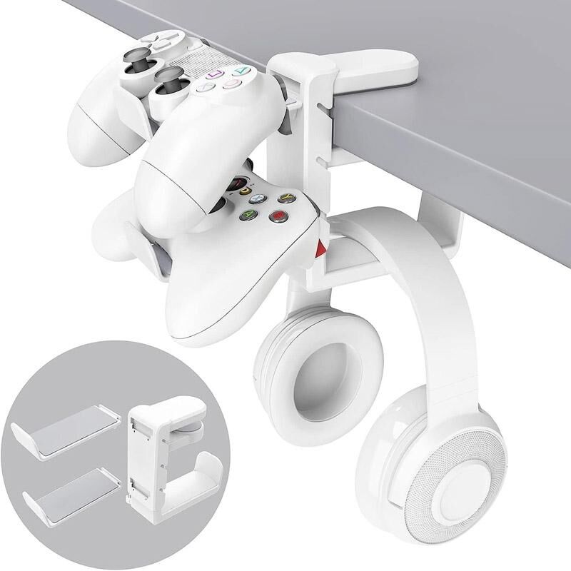 360 Degree Rotation Headset Bracket With Game Handle Organizer(White)