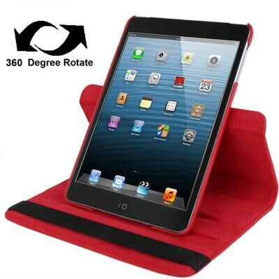360 Degree Rotation Leather Case with Holder for iPad mini 1 / 2 / 3 (Red)