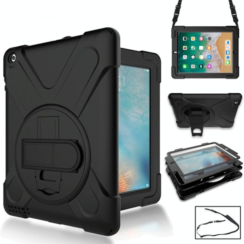 Προστατευτική θήκη σιλικόνης 360 μοιρών με βάση στήριξης, λουρί χειρός και μακρύ λουρί για iPad 9.7 (2017) & (2018) (Κόκκινο)