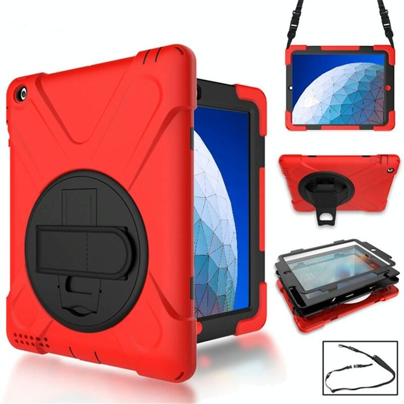 Προστατευτική θήκη σιλικόνης 360 μοιρών με βάση στήριξης, λουρί χειρός και μακρύ λουρί για iPad Pro Air 3 10.5 (2019) (Κόκκινο)