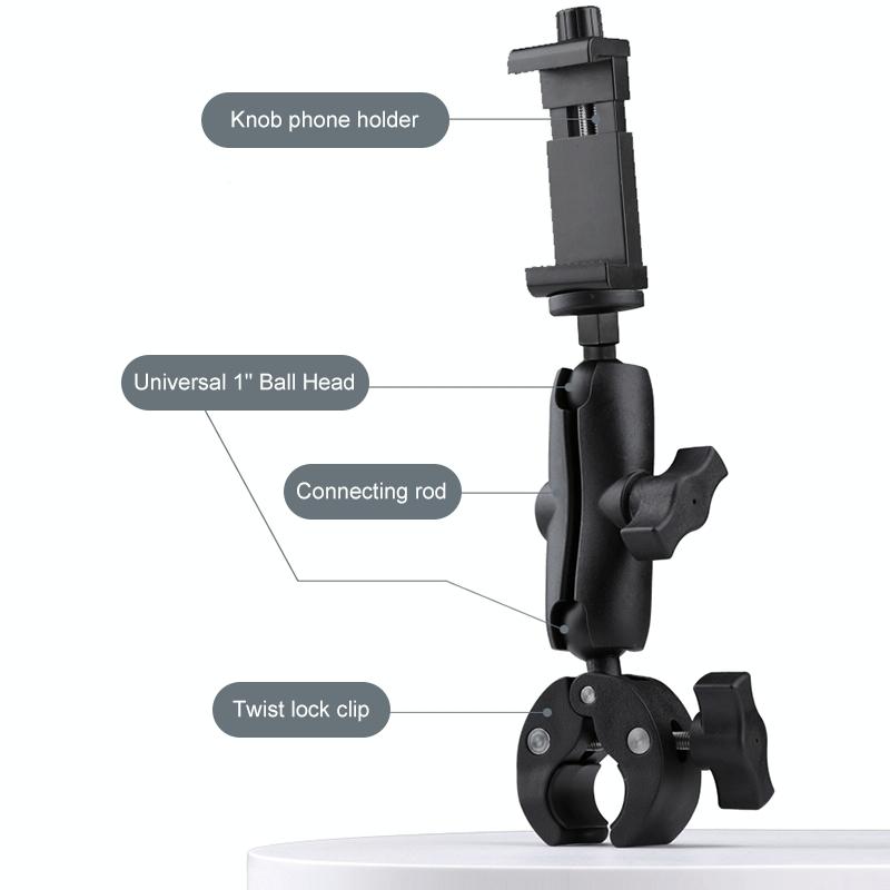 360 Rotation Adjustable Action Camera Bike Motorcycle Handlebar Holder with Phone Clamp (Black)
