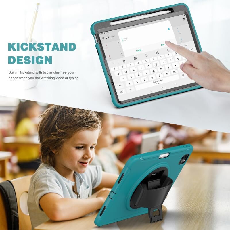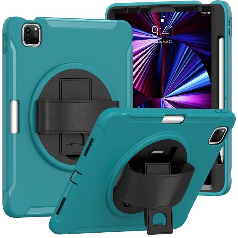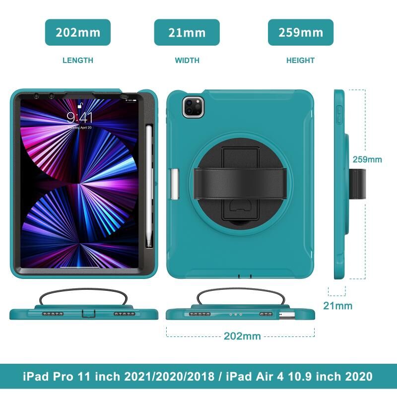 360 Rotation PC + TPU ablet Case with Holder & Strap For iPad Air 2020 / 2022 10.9 / Pro 11 2022 / 2021 / 2020 / 2018(Blue)