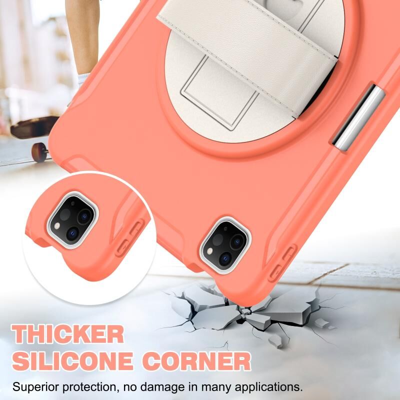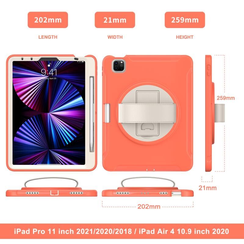 360 Rotation PC + TPU ablet Case with Holder & Strap For iPad Air 2020 / 2022 10.9 / Pro 11 2022 / 2021 / 2020 / 2018(Coral Orange)
