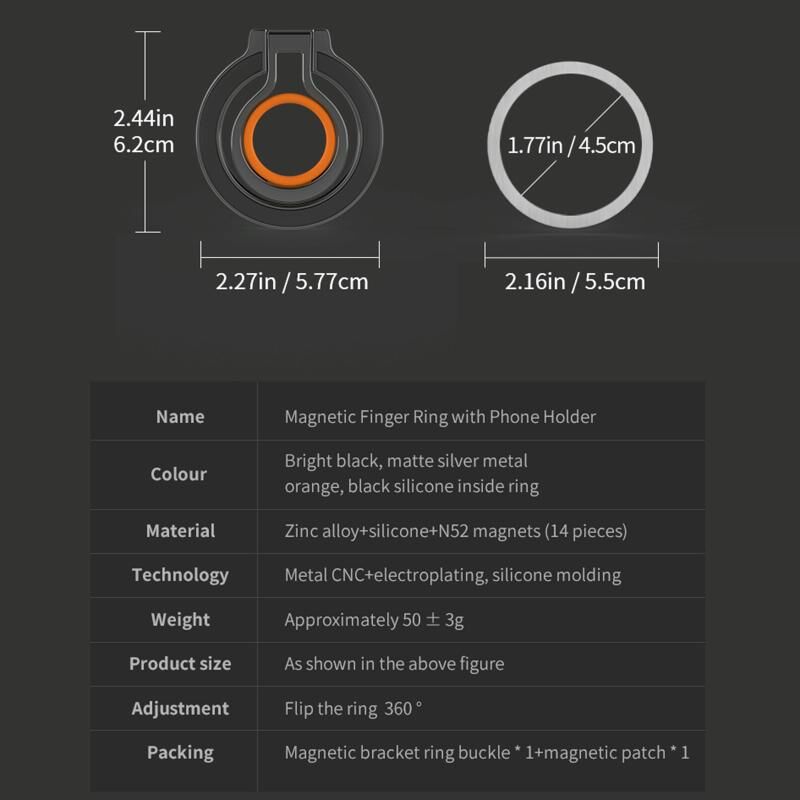 Δακτύλιος MagSafe με μαγνητική περιστροφή 360 μοιρών και βάση στήριξης τηλεφώνου (Μαύρο + Πορτοκαλί)