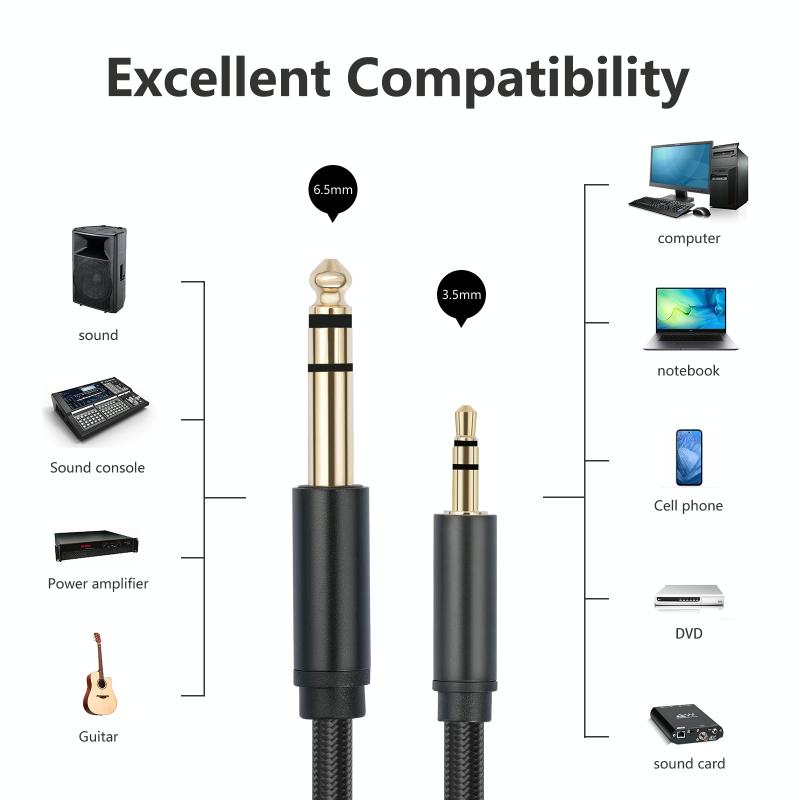 5. 6.35mm stereo male plug, connected to power amplifier, electric guitar, mixer, etc.