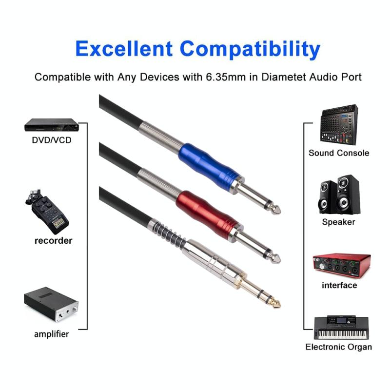 5. 3.5mm stereo to dual 6.35mm mono cable, this cable is used to connect your smart phone, portable media player, laptop/PC or similar device with 3.5mm interface jack output to 2 x 6.35mm jack input devices, such as speakers, mixing consoles, etc.