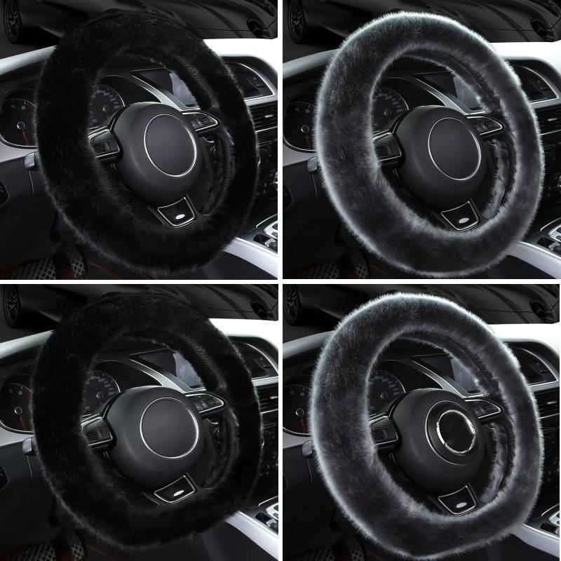 38cm Car Steering Wheel Winter Warm Short Plush Cover(O-type Gray)