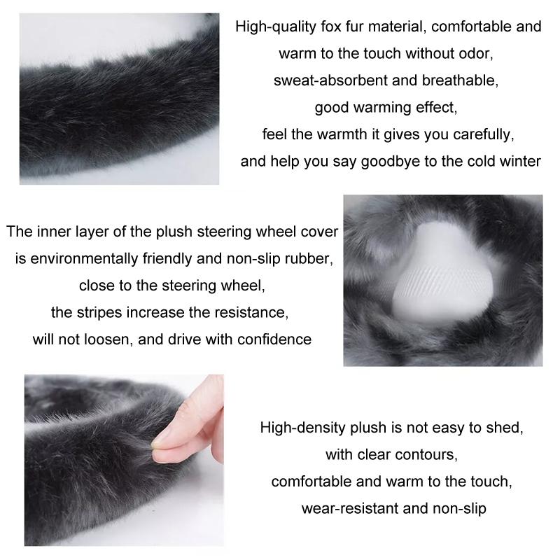 6. The inner layer of the plush steering wheel cover is environmentally friendly and non-slip rubber, which fits tightly to the steering wheel. The stripes increase resistance and will not loosen, so you can drive with confidence