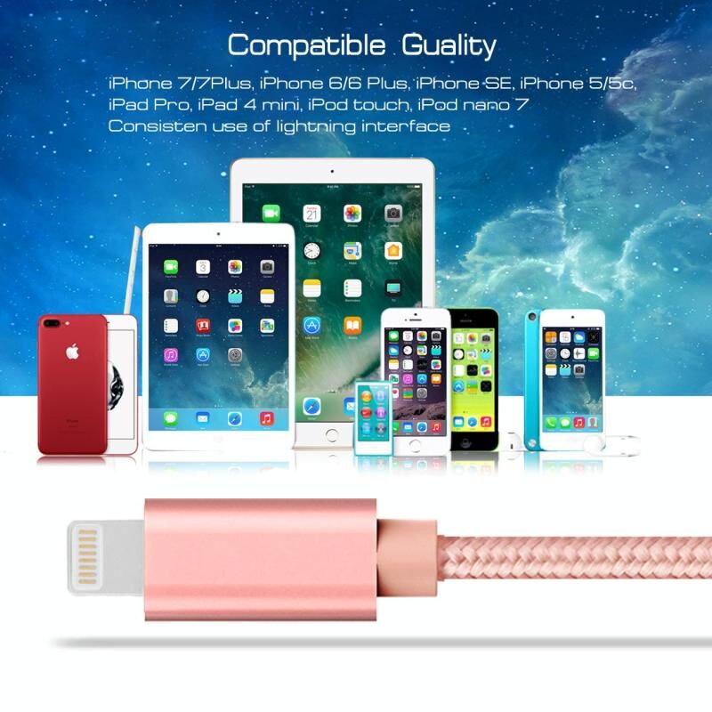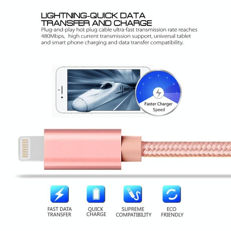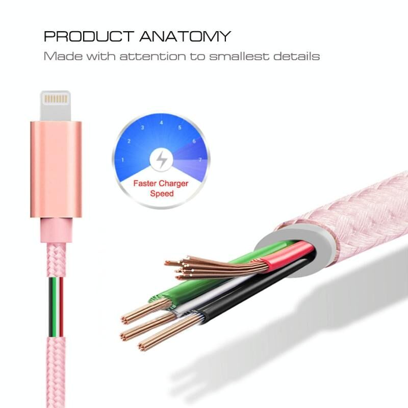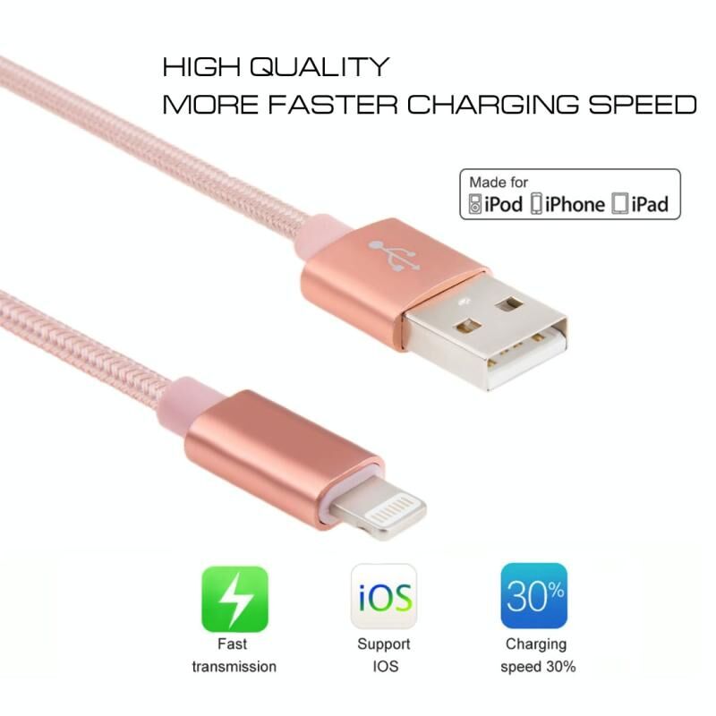 Καλώδιο φόρτισης και μεταφοράς δεδομένων 8 ακίδων από μέταλλο με υφαντή εμφάνιση, από ακροδέκτη 3A σε USB, Μήκος καλωδίου: 2μ (Χρυσό)