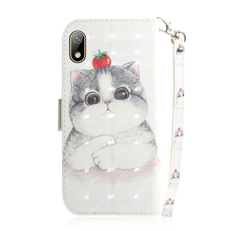 Θήκη δέρματος οριζόντιας αναδίπλωσης για Huawei Y5 (2019) / Honor 8s με χαριτωμένο σχέδιο 3D έγχρωμης γάτας, με βάση στήριξης & υποδοχές καρτών & πορτοφόλι.