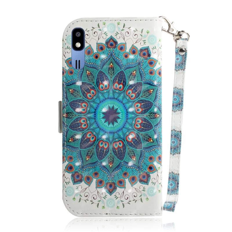 Θήκη δέρματος για Galaxy A2 Core με σχέδιο παγωνιού σε 3D, πολύχρωμο, οριζόντια αναδίπλωση, με βάση στήριξης & θήκες για κάρτες & πορτοφόλι.