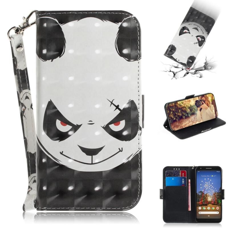 Θήκη Δερμάτινη για Google Pixel 3a XL με σχέδιο 3D ζωγραφικής, θυμωμένου αρκούδου, έγχρωμο σχέδιο, οριζόντια αναστροφή, με βάση στήριξης & θήκες για κάρτες & πορτοφόλι.