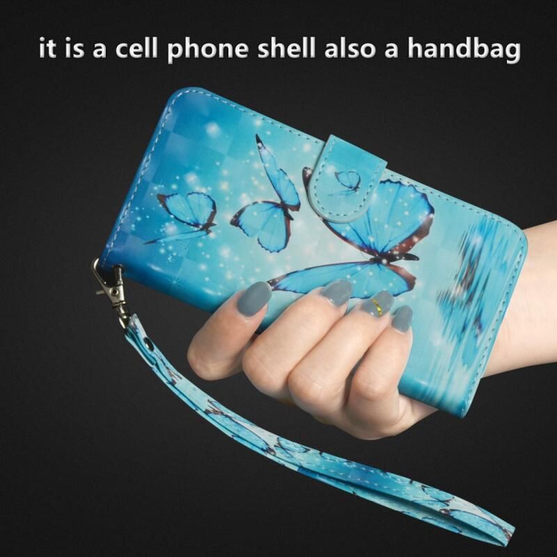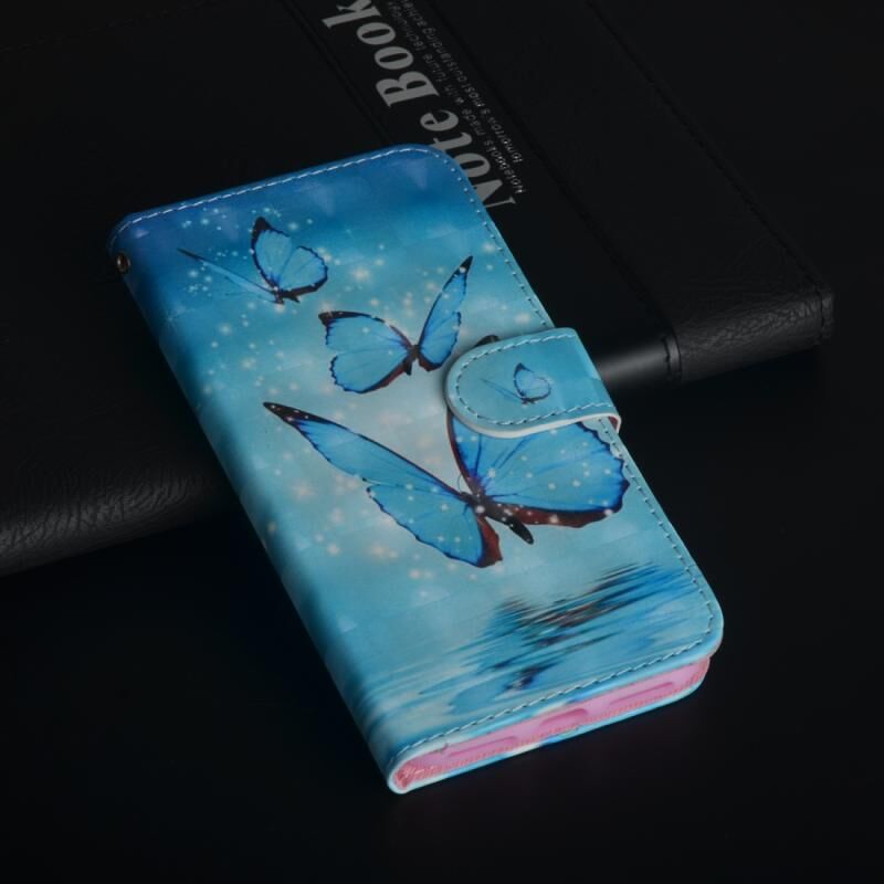 Θήκη TPU + Δερματίνη PU με Ζωγραφισμένο Σχέδιο 3D, Οριζόντια Αναστροφή, με Στήριξη & Θήκες Καρτών & Πορτοφόλι για Huawei Honor 20i (Τρία Πεταλούδες)