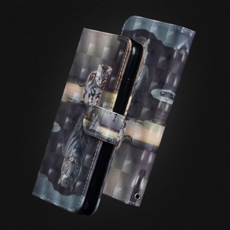 Θήκη TPU + Δερματίνη PU με Ζωγραφισμένο Μοτίβο 3D, Οριζόντια Αναστροφή, με Στήριξη & Θήκες Καρτών & Πορτοφόλι για Huawei Honor 8A Pro (Γάτα Τίγρη)