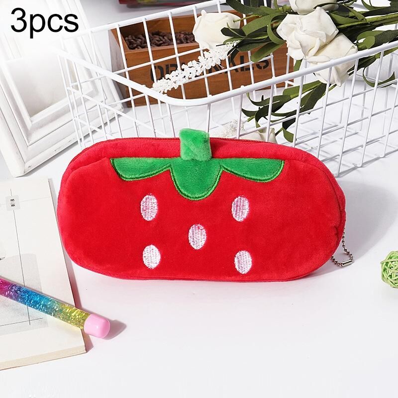 3 τεμ. Χαριτωμένες Θήκες Μολυβιών με Σχήμα Ζώου για Παιδιά, Θήκη Αποθήκευσης Ειδών Γραφείου, Χρώμα: Κόκκινη Φράουλα