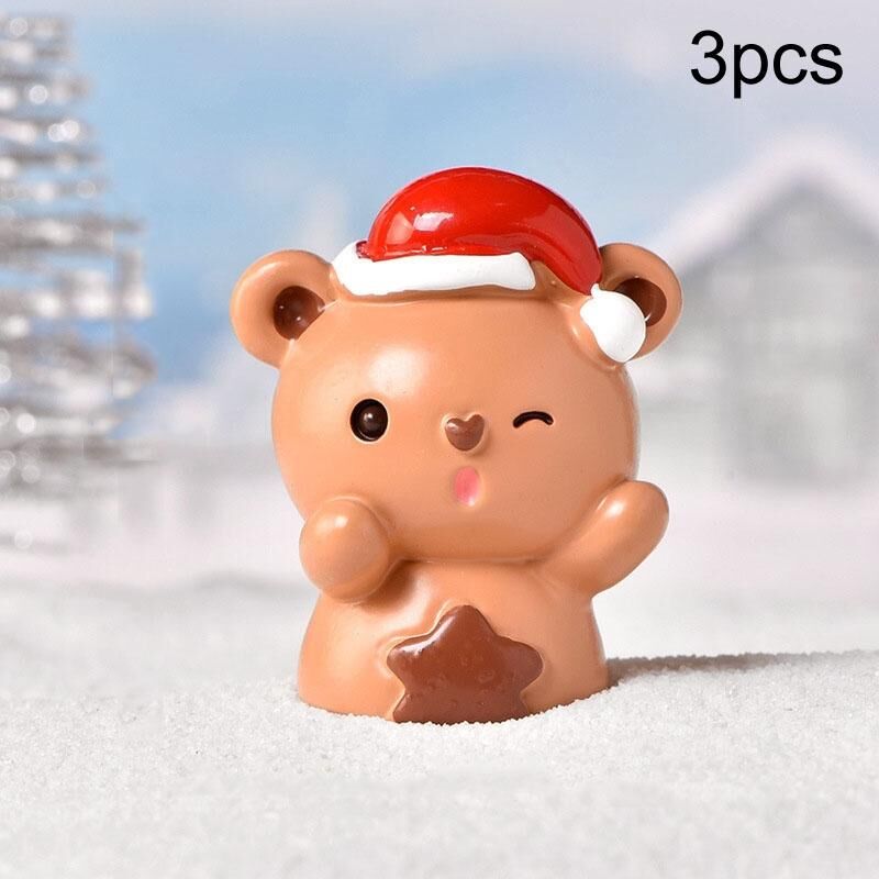 3 τεμ. Χριστουγεννιάτικες χαριτωμένες μικρογραφίες τοπίου με χιόνι, Διακοσμητικά αξεσουάρ, Στυλ: No.3 Αρκουδάκι Καφέ Αστέρι