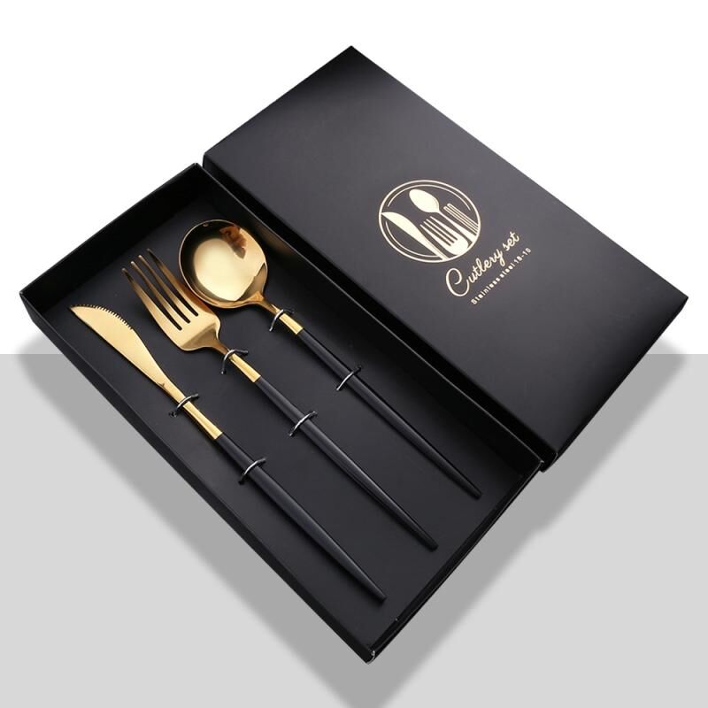 Σετ δώρου από ανοξείδωτο χάλυβα με γυαλιστερό καθρέφτη 3 τεμαχίων / πακέτο, στυλ: (Μαύρο Χρυσό)