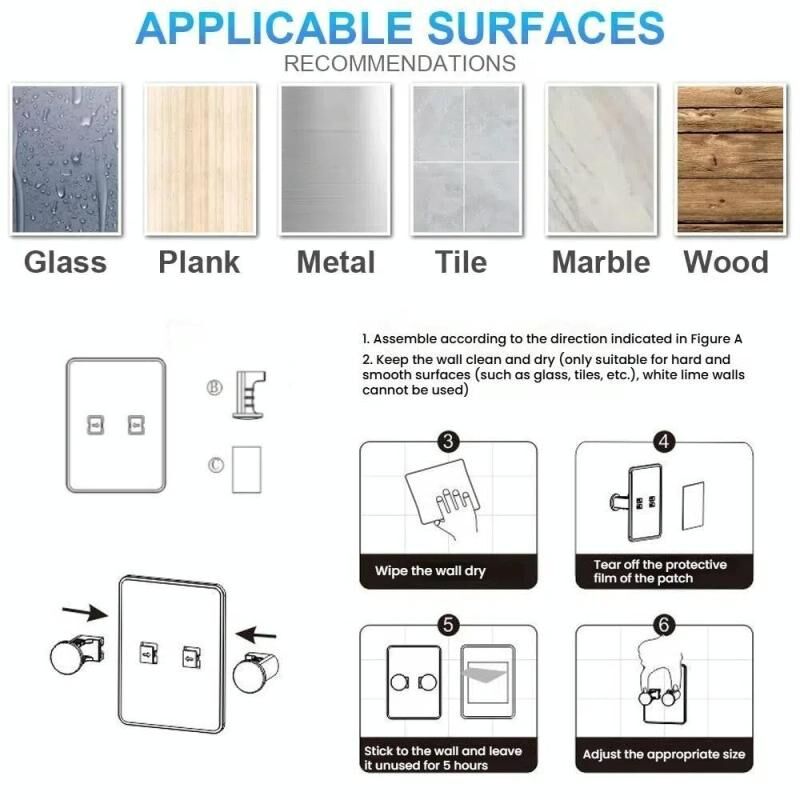 2. Effortless Installation: No tools needed! Just peel and stick onto hard, smooth surfaces like glass or ceramic tiles (not suitable for painted or textured walls).