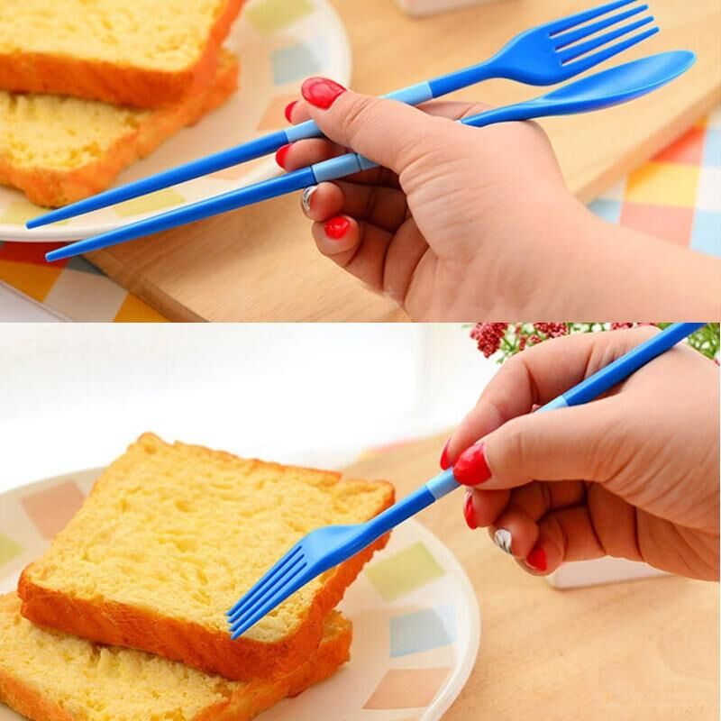 3τμχ / Σετ Μίνι Εξωτερικού Φορητά Ταξιδιωτικά Σετ Ζαχαρένια Χρώματα Διπλούμενου Σετ Δείπνου Μαθητικό Παιδικό Εργαλείο Κουζίνας (Μπλε)
