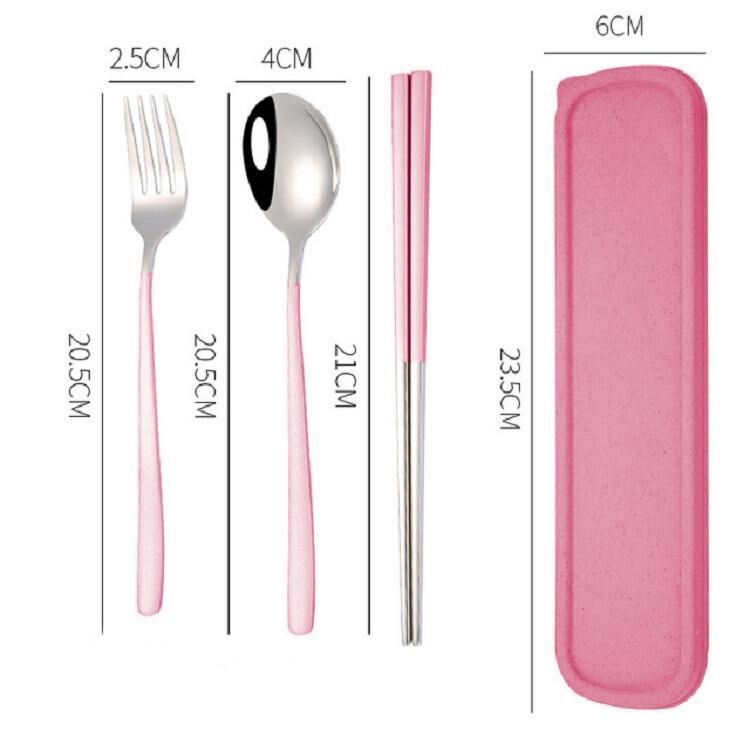 3 τεμ. / Σετ Φορητά Μαχαιροπίρουνα από Ανοξείδωτο Ατσάλι, Δημιουργικό Σετ Μπαμπού, Κουτάλι, Πιρούνι, Δώρο, Χρώμα: Ροζ