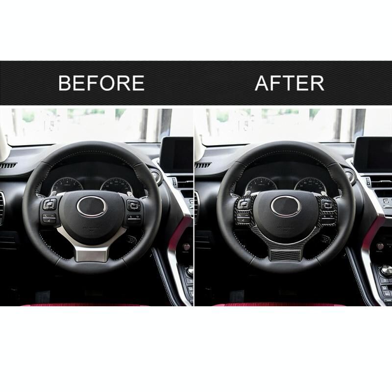 4 in 1 Car Carbon Fiber Steering Wheel Button Decorative Sticker for Lexus IS250 NX200 200t 300h, Left and Right Drive Universal