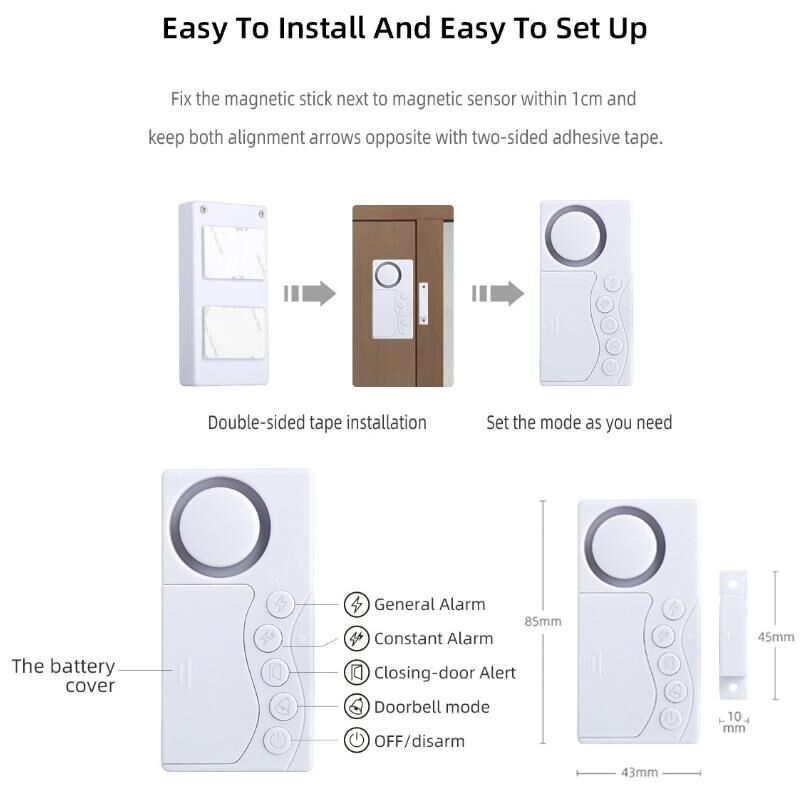 10. Easy to install and easy to set up, fix the magnetic bar within 1cm next to the magnetic sensor, use double-sided tape to keep the two alignment arrows opposite