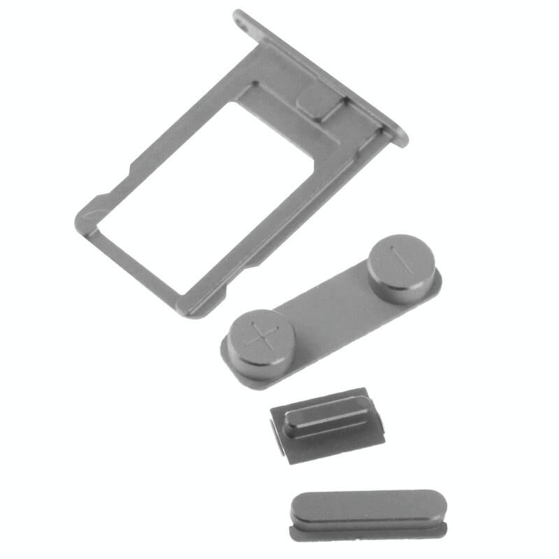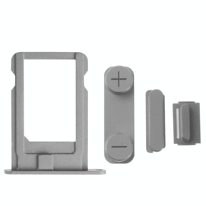 4 in 1 for iPhone 5 & 5S Original Alloy Material Colorful Nano SIM Card Tray + Volume Button + Power Button + Mute Button (Dark Grey)
