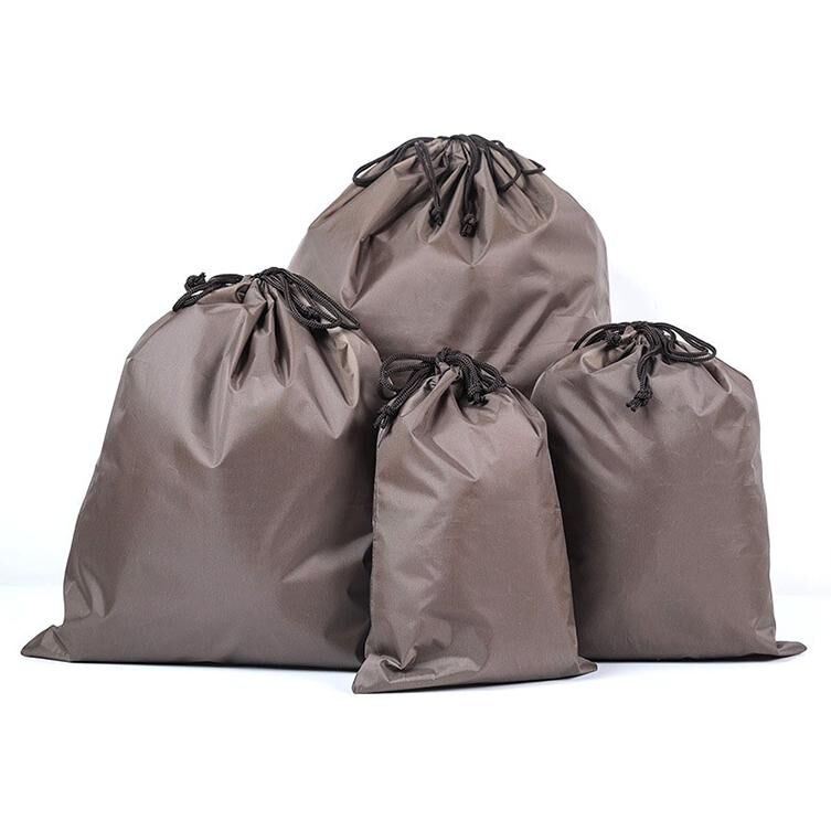 Φορητή αδιάβροχη τσάντα ταξιδιού από νάιλον 4 σε 1 με κορδόνι περίσφιξης, τσέπη δέσμης για αποθήκευση ρούχων, Μέγεθος: 34cmx39cm (Καφέ)