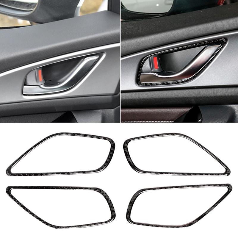 4 PCS Car Carbon Fiber Door Inner Handle Frame Decorative Sticker for Mazda Axela 2014 / 2017-2018