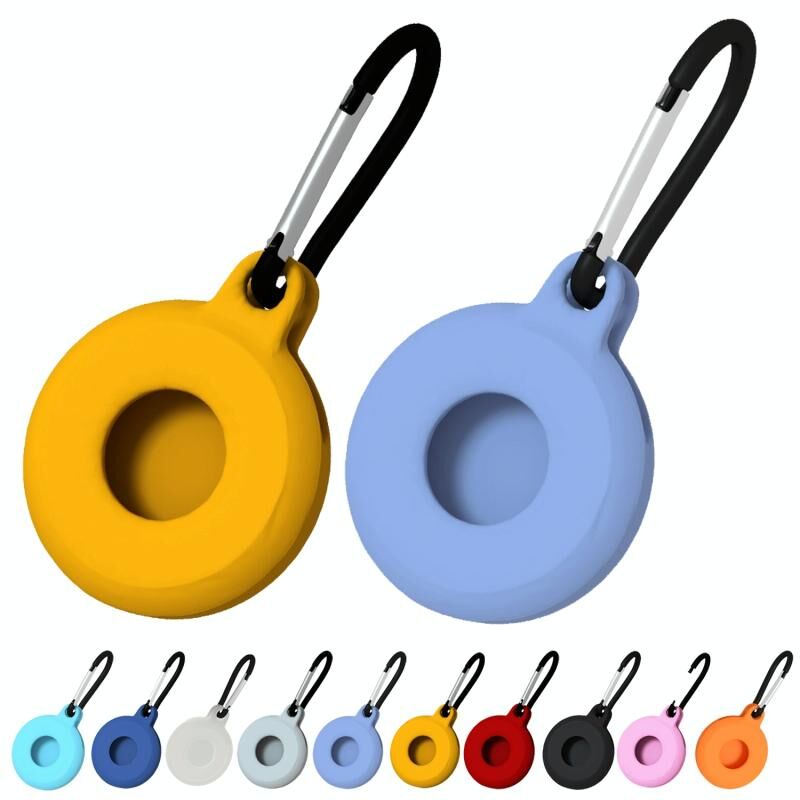 4 Τεμ. Στρογγυλή Αδιάβροχη Αντικραδασμική Προστατευτική Θήκη Σιλικόνης με Καραμπίνερ για AirTag (Μέντας Πράσινο)