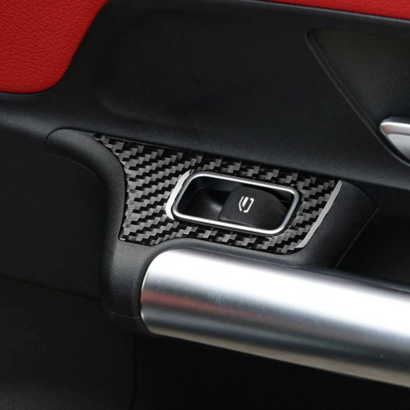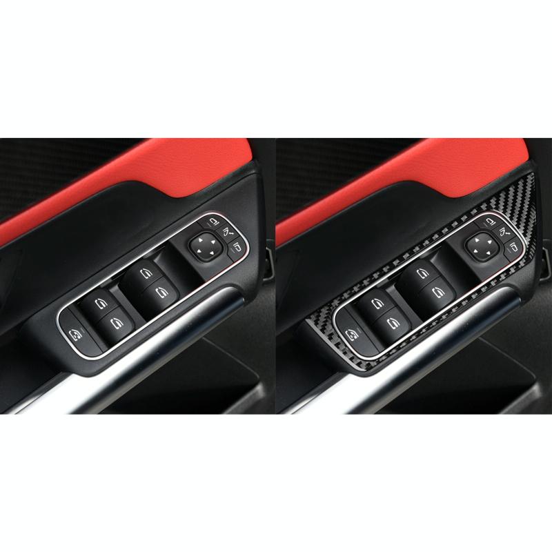 4 PCS / Set Carbon Fiber Car Glass Lift Switch Decorative Sticker for Mercedes-Benz B-Class 2019 / GLB 2020,Left Drive