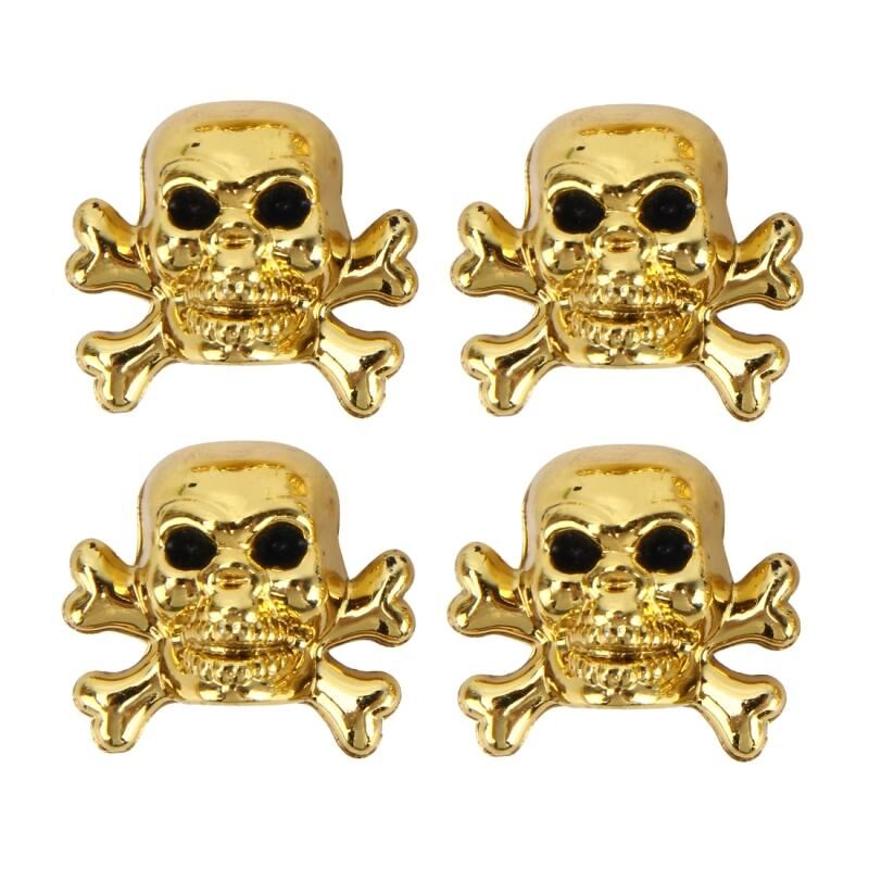 4 PCS Universal Skull Shape Gas Cap Mouthpiece Cover Gas Cap Tire Cap Car Motor Bicycle Tire Valve Caps(Gold)