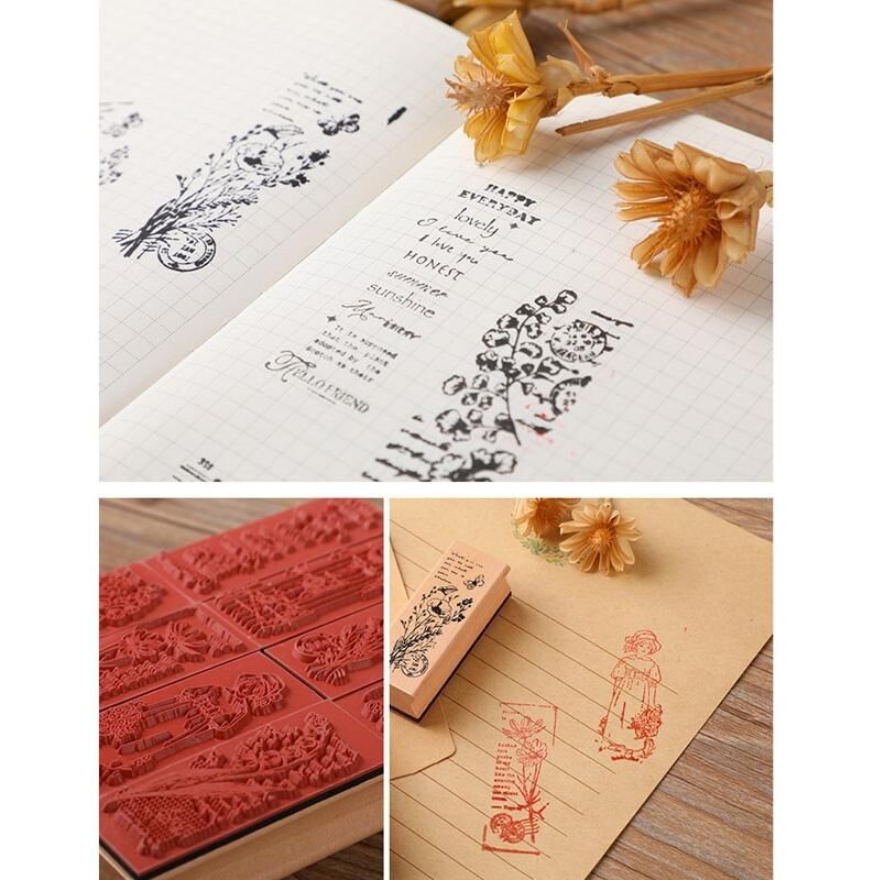 4 ΤΕΜ. Ξύλινα Λουλούδια και Φυτά Σφραγίδα Κοριτσιού Φρέσκο Φυτικό Εγχειρίδιο DIY Διακοσμητική Σφραγίδα (Σουζάνα)