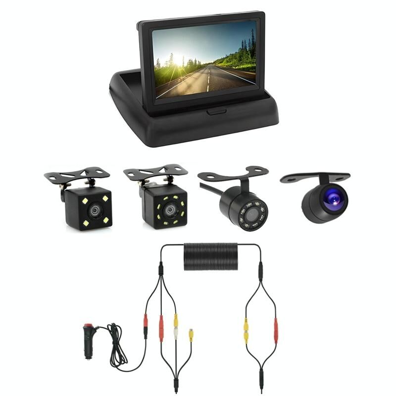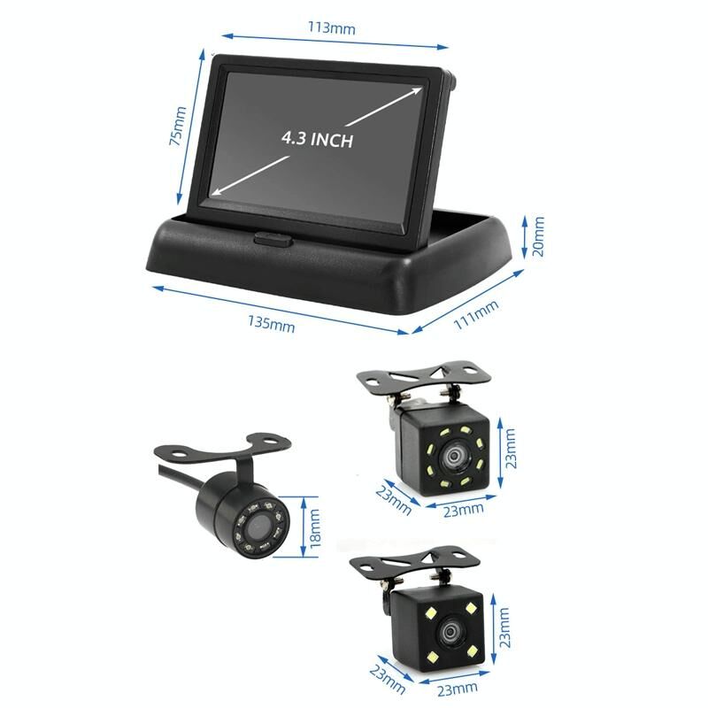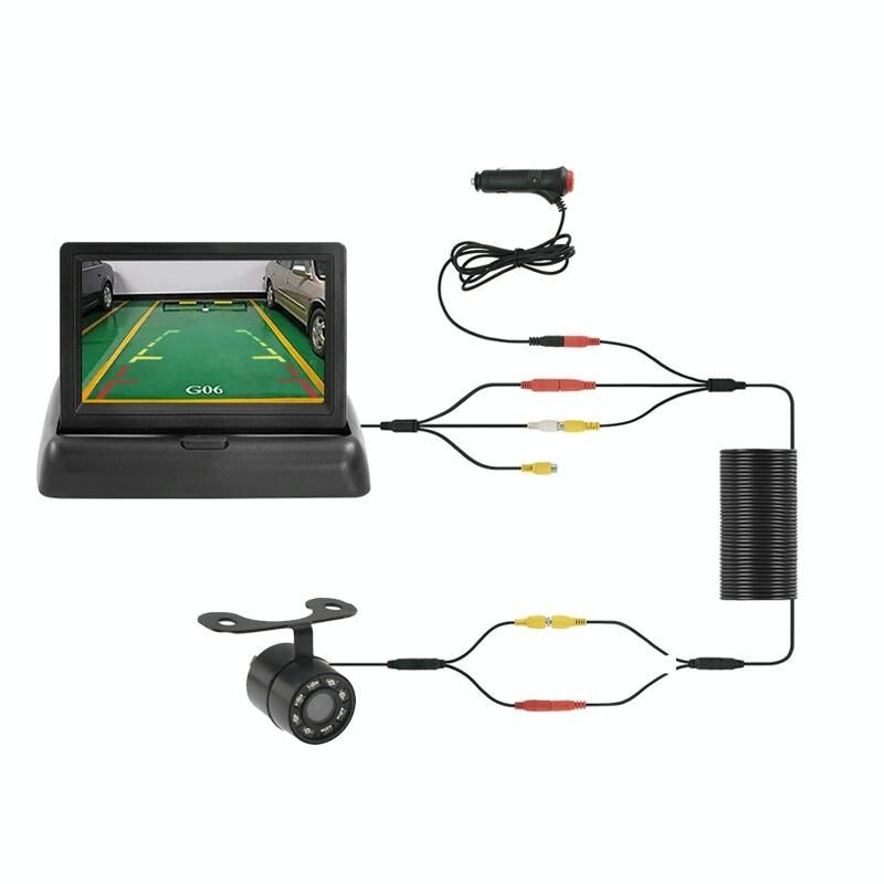 Κάμερα οπισθοπορείας με οθόνη 4,3 ιντσών, νυχτερινή όραση, αδιάβροχη + καλώδιο επέκτασης 7 μέτρων, Χρώμα: Αποσπώμενη οθόνη + Κάμερα με 8 φώτα πεταλούδας.